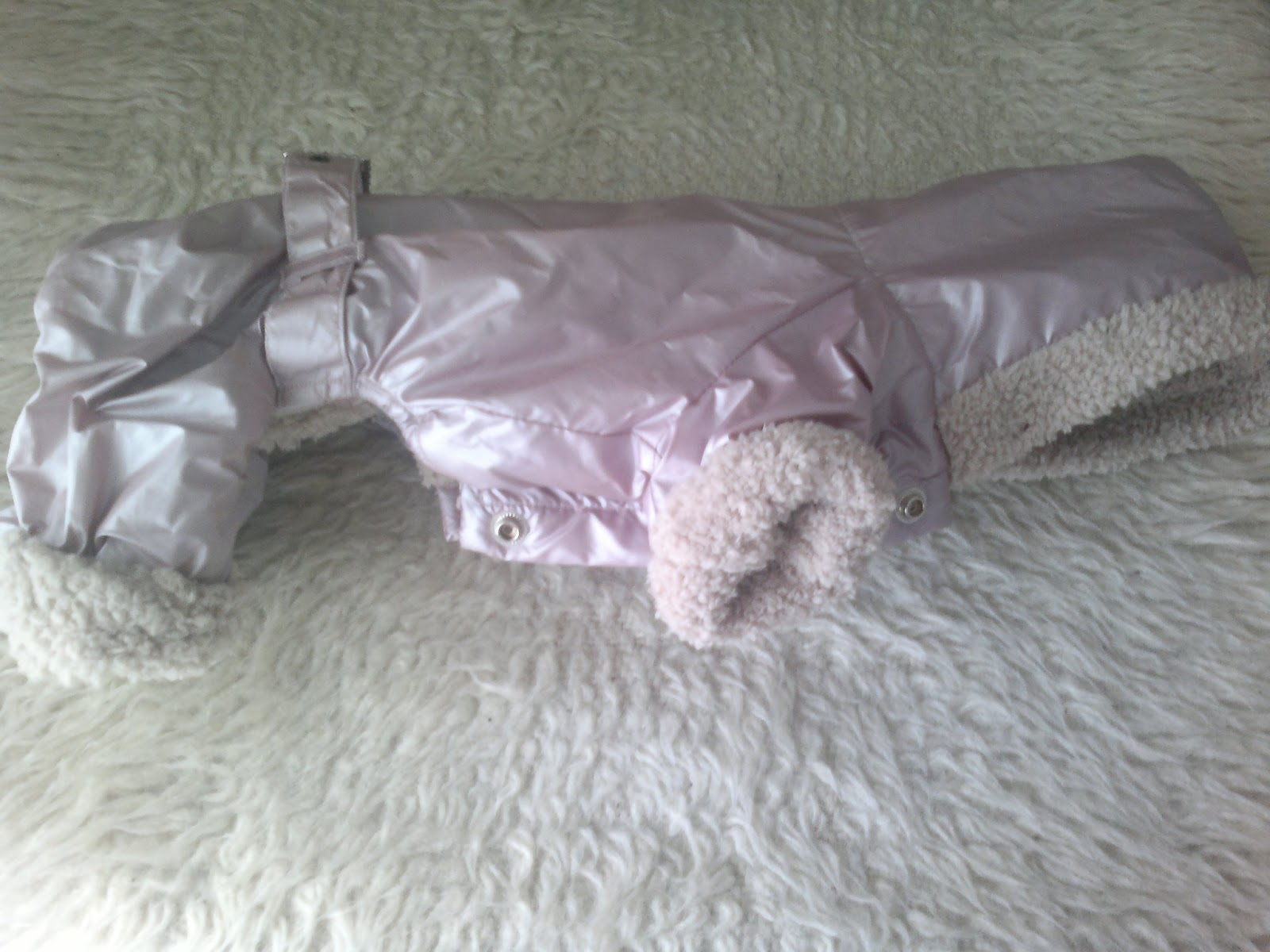 Sitten on haalari joka oli sylvillä pienenä kerran, puppy angel merkkinen vaalean punainen haalari jossa ihanan pehmeä teddyvuori ja päällä oleva materiaali kestää jonkin verran vettä:) haalarin selän mitta on noin 27cm + huppu. Käytetty kerran pentuna, mutta oli sillon iso ja seuraavana talvena jo pieni :D